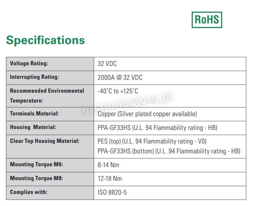 - Materiał obudowy: PPA-GF33HS (klasa palności U.L. 94 - HB)