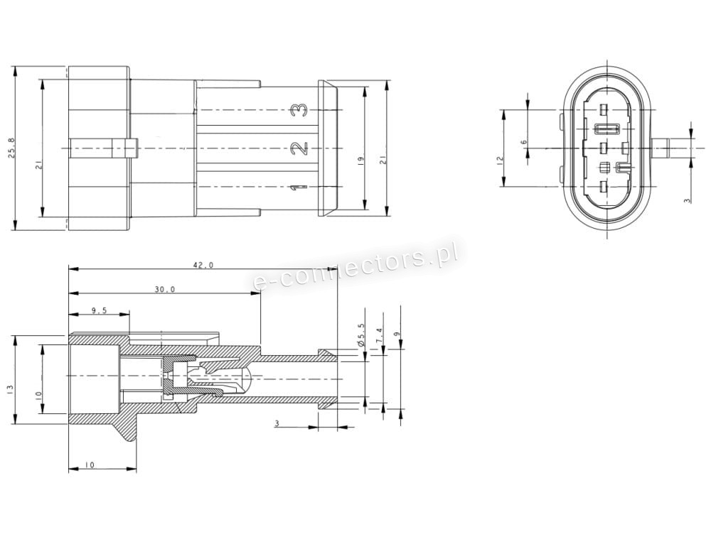 Gniazdo hermetyczne 3-pinowe Superseal 1,5