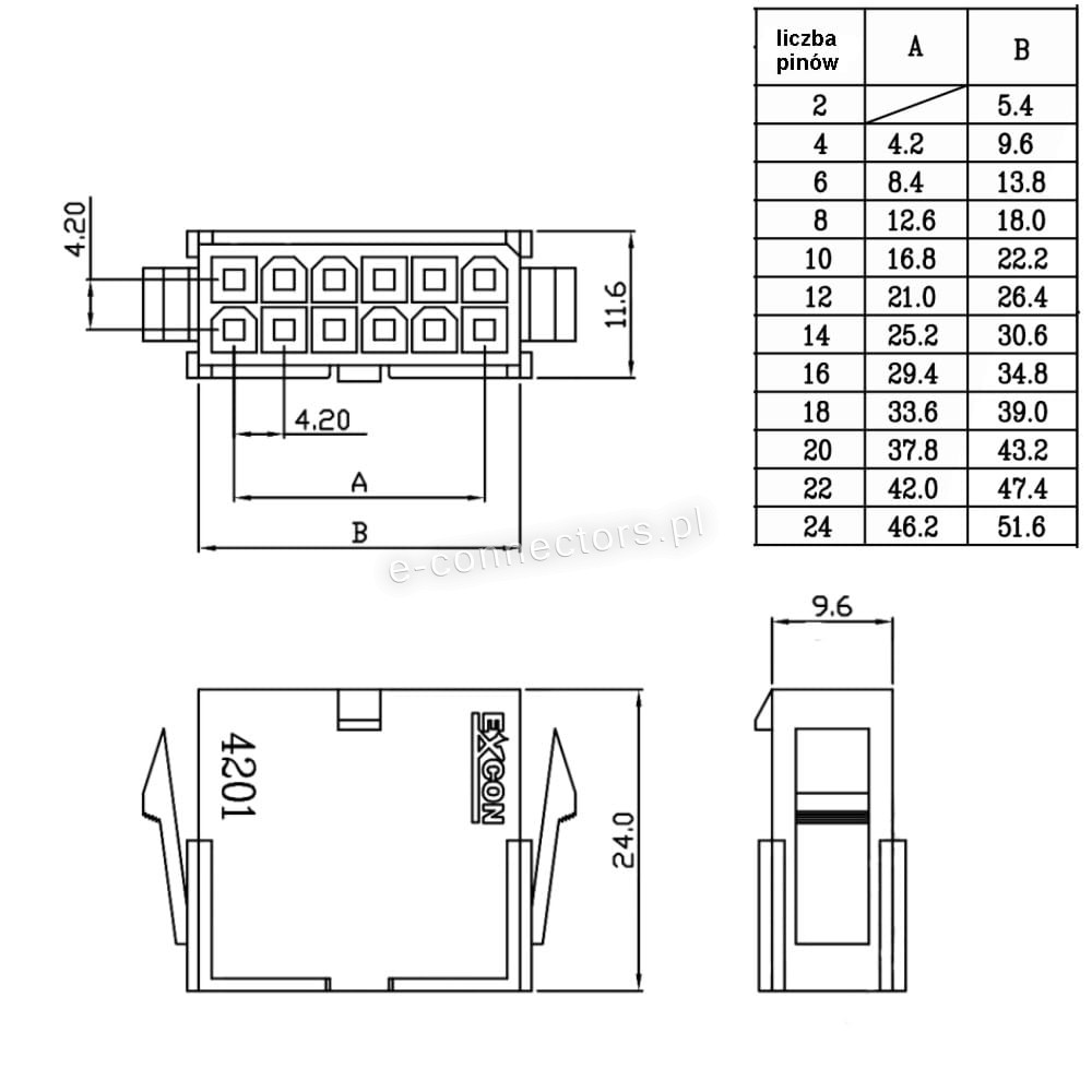 - Gniazdo Excon Mini-Fit 4-pin: 1 sztuka