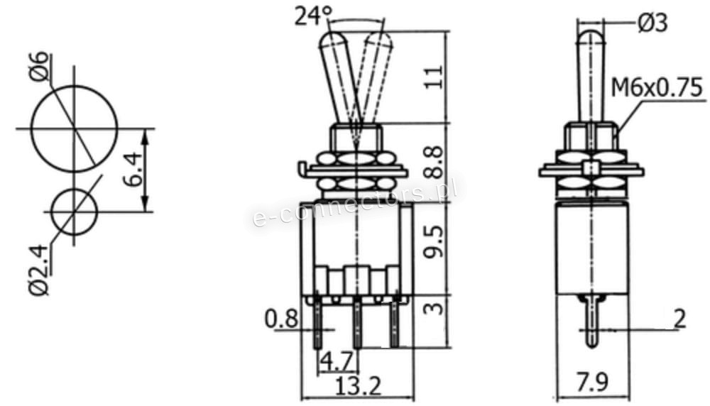 - Rodzaj: ON/OFF/ON 3-pozycyjny