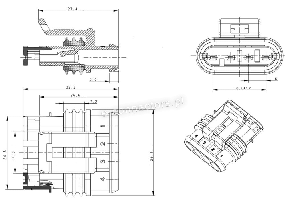 Wtyczka hermetyczna 4-pinowa Superseal 1,5